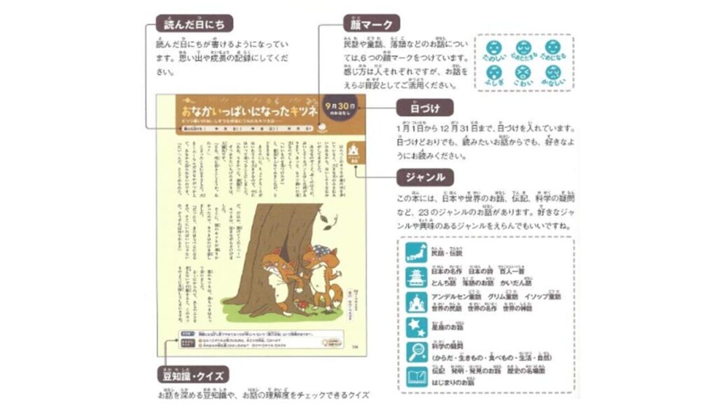 すべての漢字にふりがな付きだから、低学年の子でもスラスラ読めます。