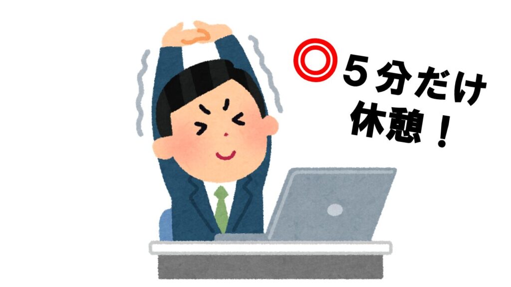 改善策: 50〜60分作業ごとに5〜10分の休憩を取ろう!